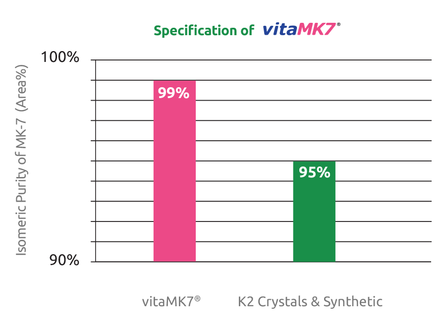 VitaMK7®的純度(HPLC法)>99%,合成K2的純度為95%。